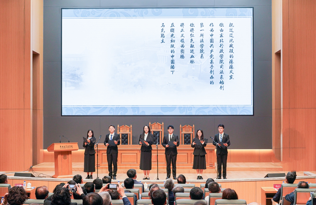 法学学科的发展注入新的动力。随后,张文显向获得“尊法循理奖学金”的获奖学生代表颁奖,同学们用激昂的声音和真挚的情感朗诵了《法学力量》,表达了对法学的热爱和追求。
