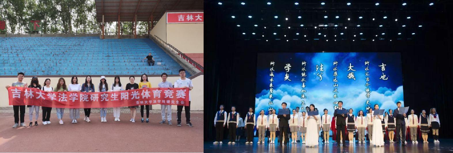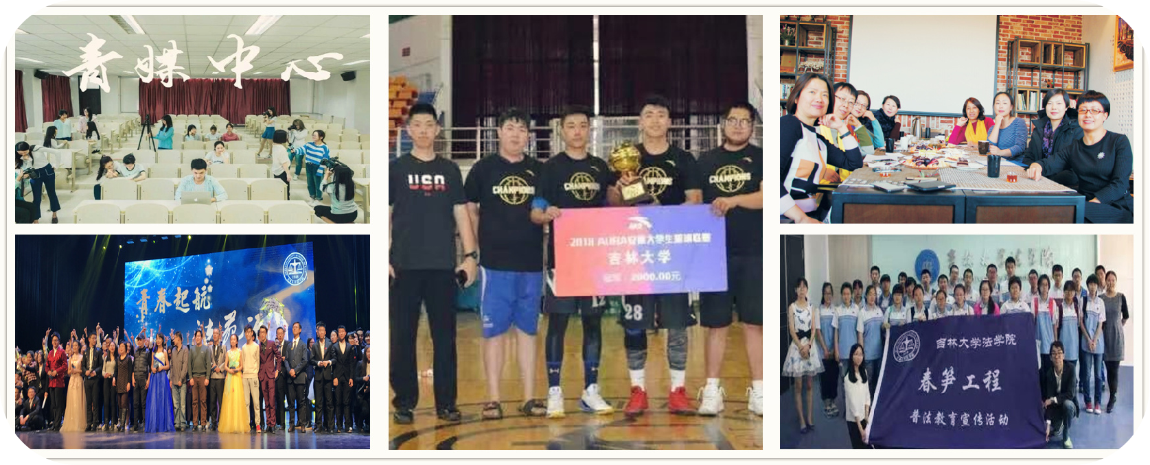 School of Law encourages students to engage in activities and provides platforms to show thier talents. Various students associations are established for students to develop thier insterests and make friends, inluding Change Now Club, Bailu Han Costume Society, Starlight Chinese Opera Society, Lanting Calligraph Association, Cartoon Society of Jilin University, Association of Academic Debates, Association of Legal Aids, Legal Education Association, Legal English Association, Legal Explorer Association, Legal Pratitioner Association and Legal M.M. Association.