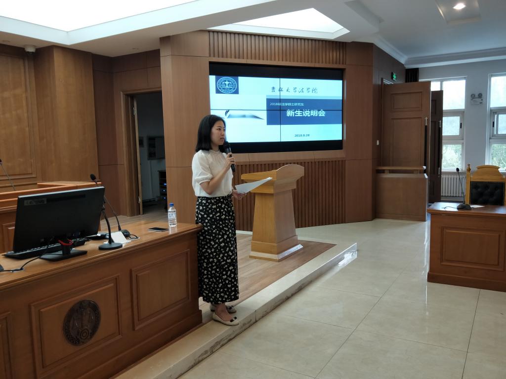 研究生办公室高岩老师、张舒老师在三教五阶为2018级法学研究生召开研究生教育与日常管理宣讲会。