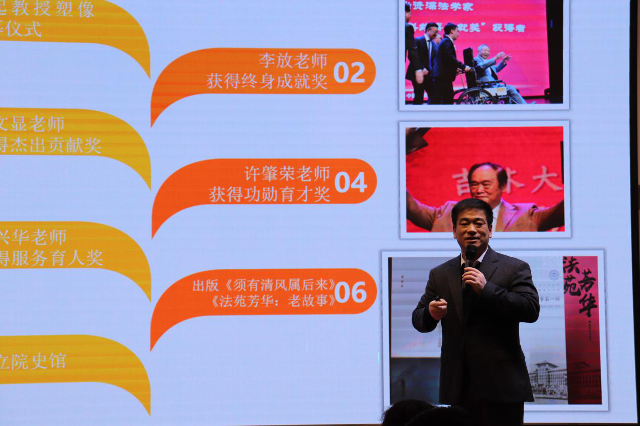 九、校友工作方面,积极配合北京校友会,成功举办了“马起教授塑像揭幕仪式”和“马起教授法学教育思想研讨会”。
