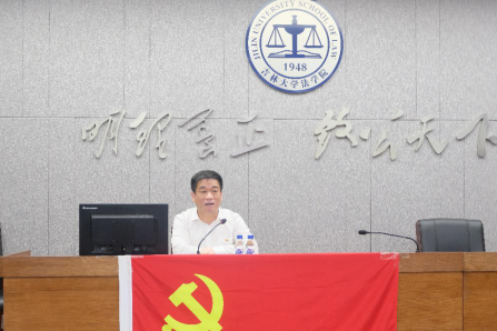 的荣光,也更需要提高自身的能力。涵养自己胸怀天下的气度,以天下为己任;涵养坚韧不屈的风骨,习惯走逆风路;涵养自信从容的风度,提高自己的业务能力、外语水平与文字功底,把自己打造成高精尖人才;涵养辩证思考的智慧,仰望星空且脚踏实地,知行合一。第三,作为党员要“担当新使命”。吉大法学人,要做公平正义的捍卫者,使人民从法律中感受到公平正义;做廉洁自律的表率者,堂堂正正做人,清清白白做事;做保持警惕的清醒者,坚持底线思维,远离各种现实诱惑;做吉大荣誉的守护者,传承吉大红色基因,秉承白求恩精神、黄大年精神,传承五院四系的荣光。最后周春国表达了对同学们的不舍与殷切期盼,祝愿大家前程似锦,时时刻刻记住自己党员身份,让党旗永驻心间!