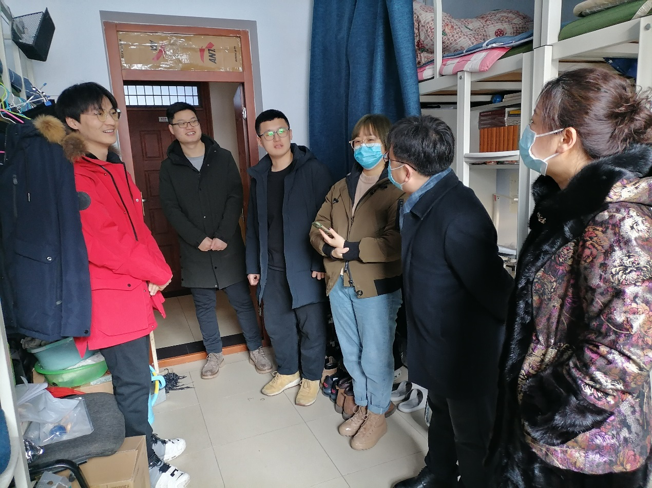 徐杰副书记、曹险峰副院长与学生们亲切交谈,详细地了解了学生们的年级、寒假留校原因以及家乡的疫情情况,贴心地问候学生们宿舍供暖是否充足、食堂饭菜是否可口、是否已经为父母家人送上了节日的祝福。了解到多数学生是为了撰写学位论文而选择留校过春节,老师们亲切地询问了学生们的学习地点和论文的写作进度,嘱托学生们要劳逸结合,在论文撰写的过程中做好规划、调整心态、保证好饮食和作息,如果学生们有什么困难,要及时与极速赛车