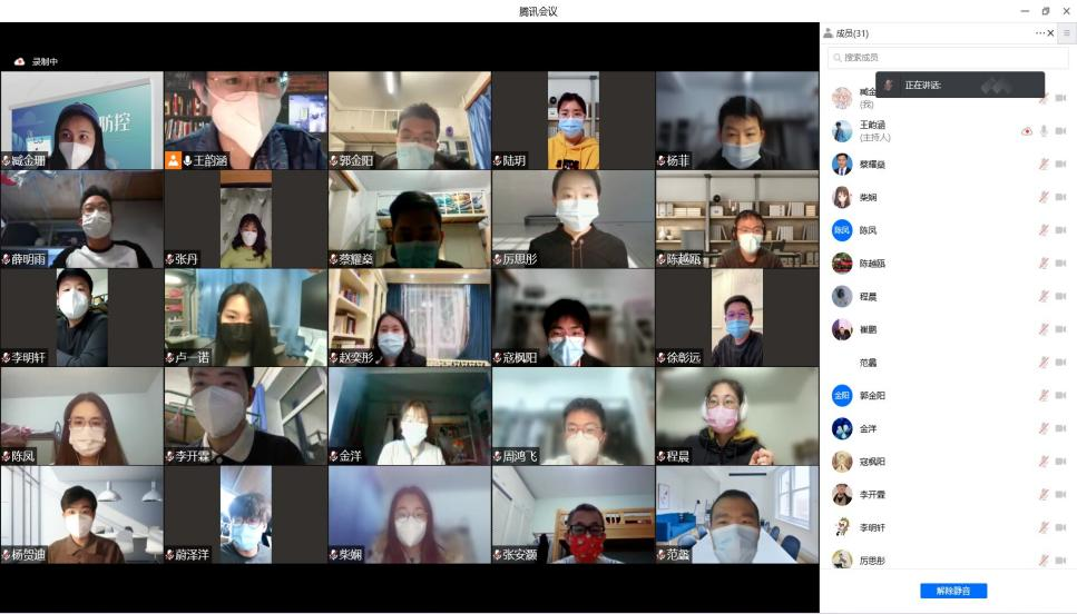 最后,支部党员及入党积极分子等围绕疫情防控展开了集体讨论。作为班长,郭金阳同志强调同学们要在疫情防控的同时,要保持正常的学习秩序。而针对大家在疫情防控期间可能出现的心理问题,作为心理委员,李明轩同志建议大家尽量不要将注意力全部放在疫情防控上,否则容易产生焦虑情绪,最好在学习之余发展个人兴趣。