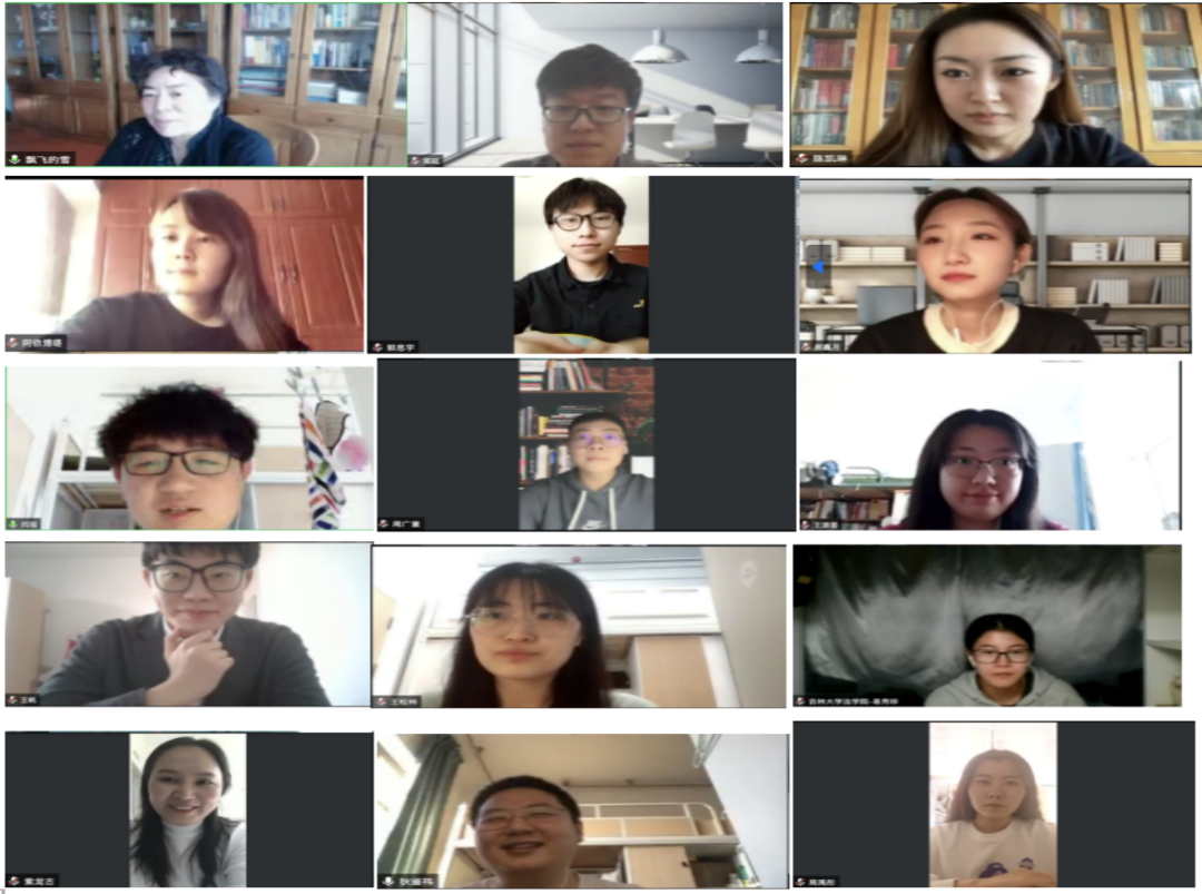 在抗击疫情的大背景之下,如何平衡学习与生活,调节焦虑与压力成为了每一位同学的必修课。在学术交流环节后,同学们分享起了舒缓身心的“小妙招”与近期见闻。位于寝室隔离的王源荟同学与王松林同学通过自身学习画画与韩语的经历鼓励大家在封寝期间进行个人兴趣爱好与能力的拓展。周广童同学谈到了自己在封寝期间通过阅读和看电影等方式营造乐观的心理状态。周雨彤和王喆两位同学讲述了独自在寝室生活的奇妙经历。索龙古、王帆两位同学分享了实习期间的趣闻与感悟。同学们通过视频交流的方式,向老师汇报近况,也对老师诉说着生活中、心理上遇到的确幸和波澜,虽然所念之人无法相拥、所感之事结在心肠,但是同学们却通过屏幕中的张张笑脸打破各自所在的小小“茧房”,深深拥抱师门这样一个大大的集体,从中汲取充沛的力量。