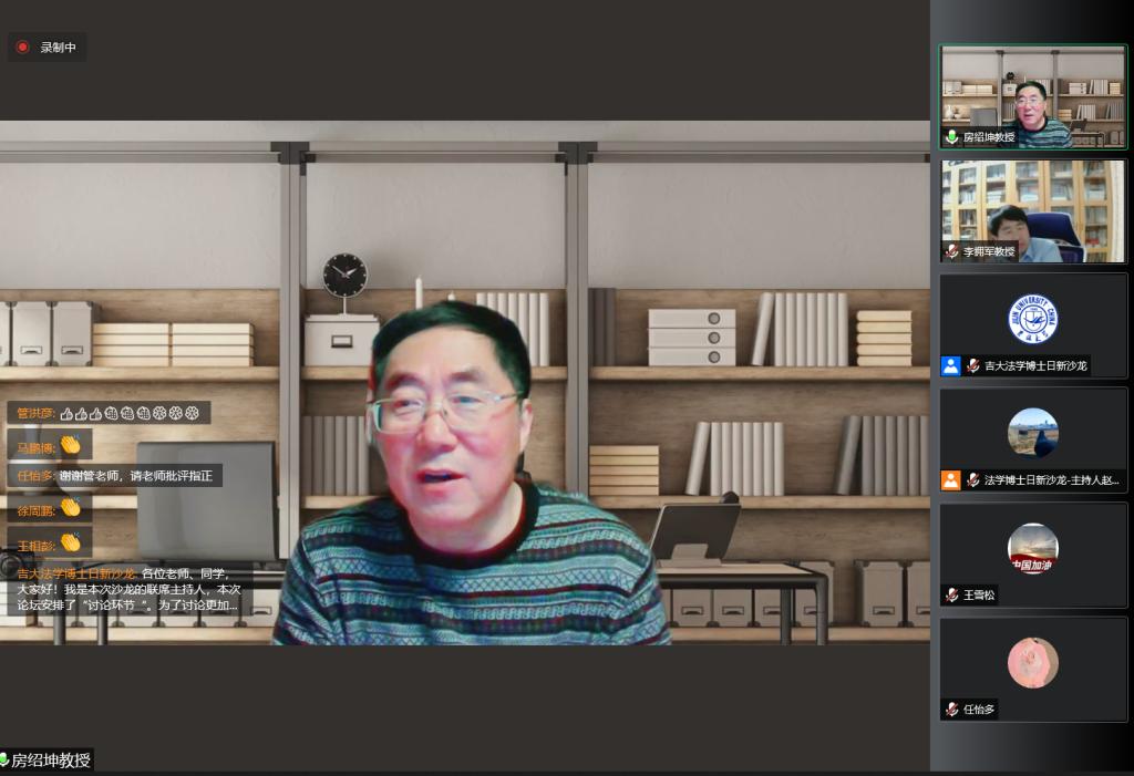 房绍坤教授为活动致辞。房绍坤教授表示,长春此轮疫情来势汹汹,在长师生听从指挥、共克时艰,为长春疫情防控作出重要贡献。房绍坤教授指出,此次活动紧扣时代背景、关切时代热点,对于构建“大法学”共同体,实现思维碰撞,具有重要意义。最后,房绍坤教授祝愿沙龙圆满成功。