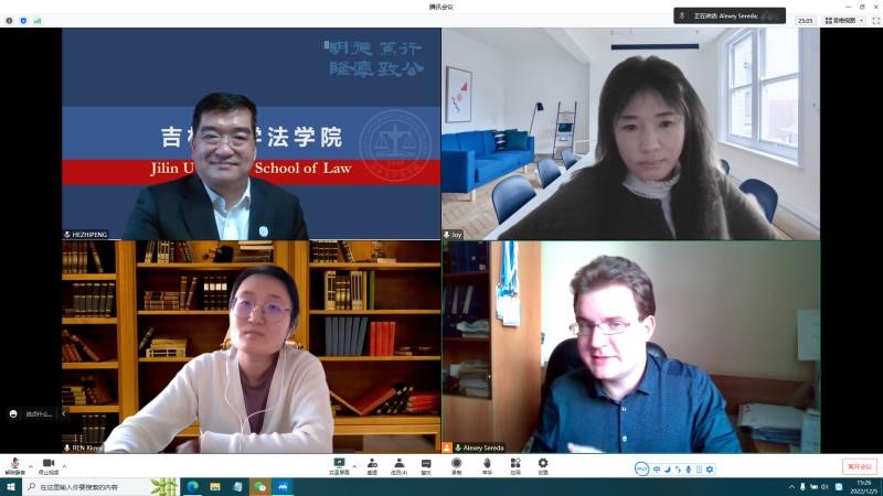 何志鹏教授和温双阁教授感谢俄罗斯联邦政府财政金融大学对吉大法学的关注与支持,肯定了Alexey Sereda的合作提议。为实现合作的可持续发展,双方达成一致意见,从探讨合作交流备忘录和联合举办学术会议开始,为双方师生交流提供平台,同时为未来深化合作做好铺垫。