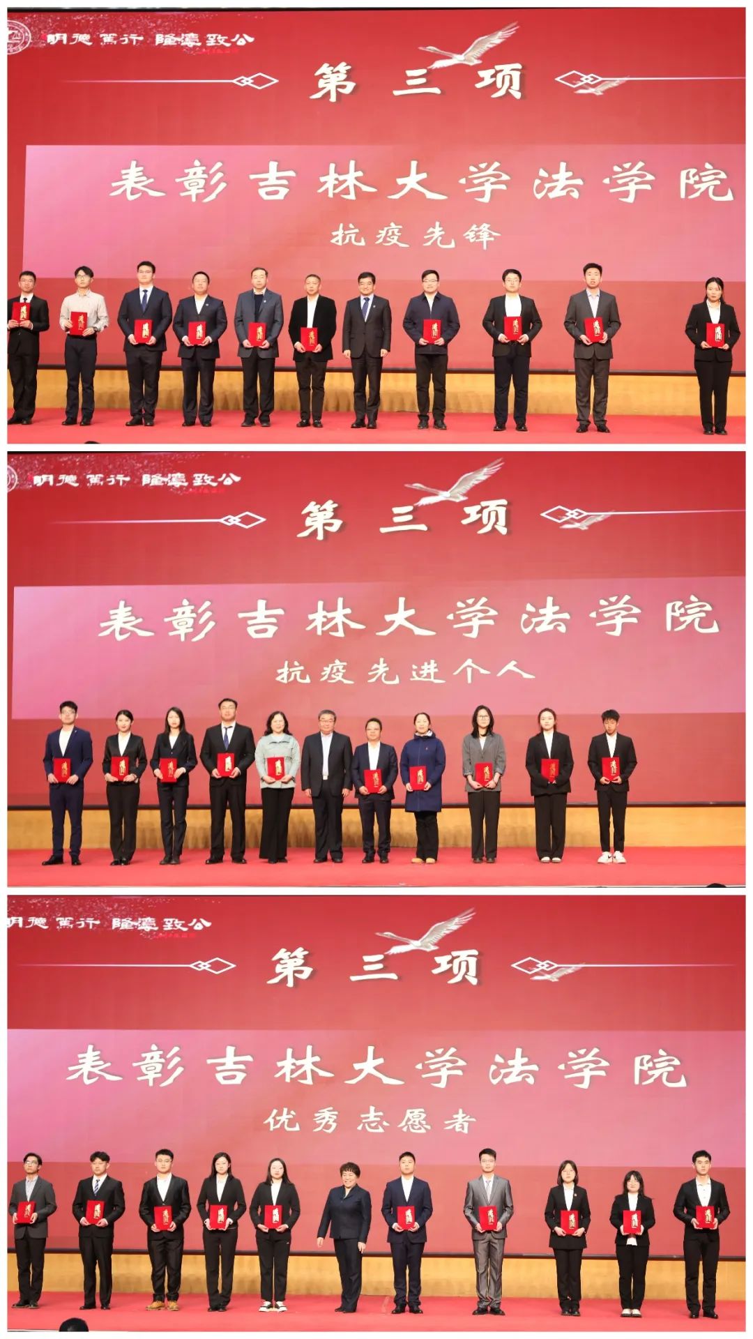 本次表彰大会在激昂的校歌声中圆满落下帷幕。75年来,一代代吉大法学人深耕细作谋学科发展,满腔热忱育莘莘学子,革故鼎新助法治建设。未来,吉大法学师生将薪火相传,赓续荣光,明德笃行,隆法致公,为中国法治建设贡献吉大力量。“青春逢盛世,奋进正当时”,相信吉大法学人能够在未来的生活、学习和工作中不断积蓄力量,持续推进极速赛车