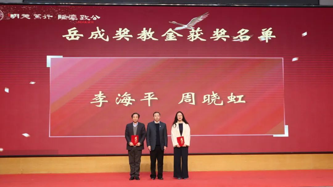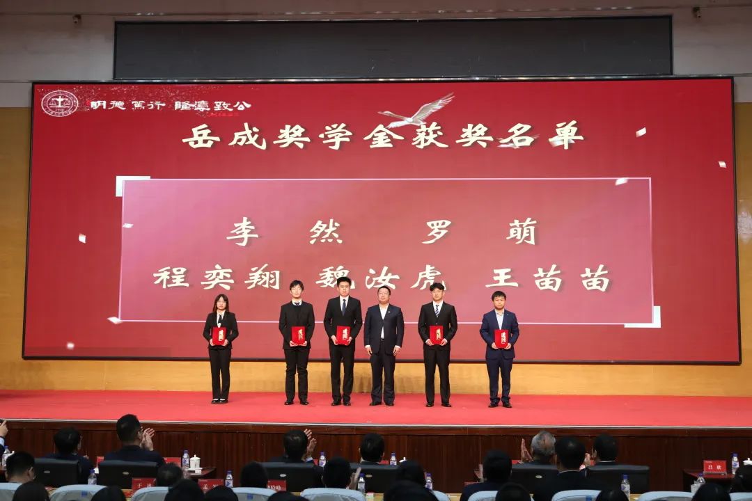 副院长吕欣、理论法学研究中心行政副主任刘舰为岳成奖教(学)金获得者颁奖