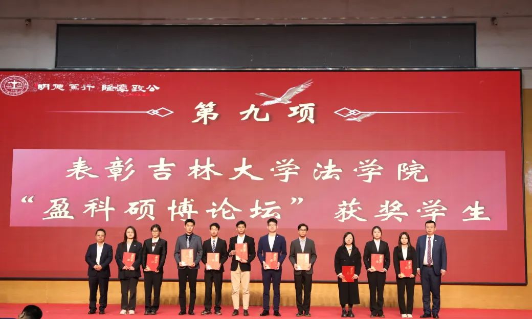 吉林吉大律师事务所主任高云峰、吉林瀛庆律师事务所主任孟军为专项奖学金获奖学生代表颁奖