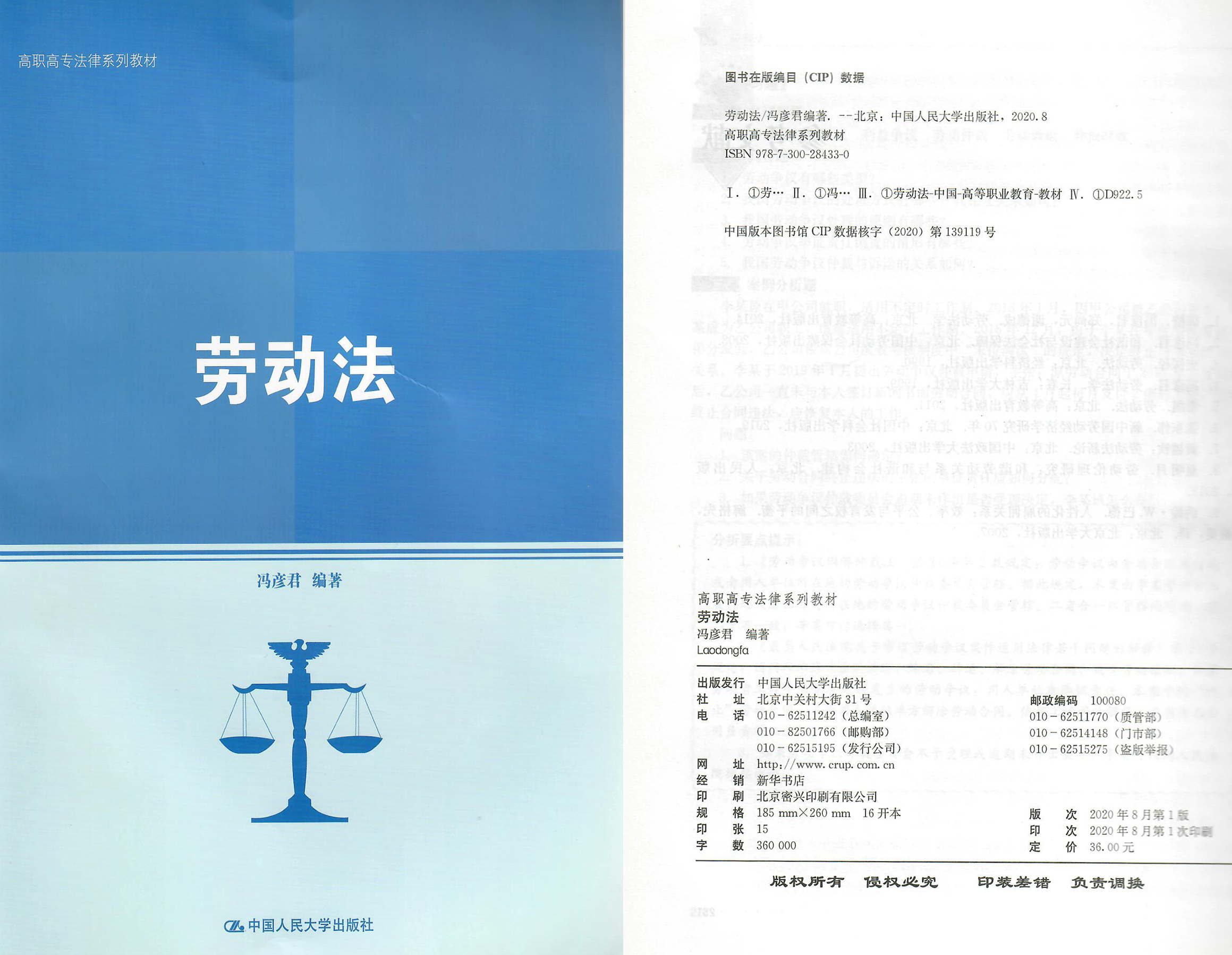 冯彦君教授编著、由中国人民大学出版社2020年8月出版的高职高专法律系列教材《劳动法》,成功入选首批“十四五”职业教育国家规划教材名单(新申报教材)。