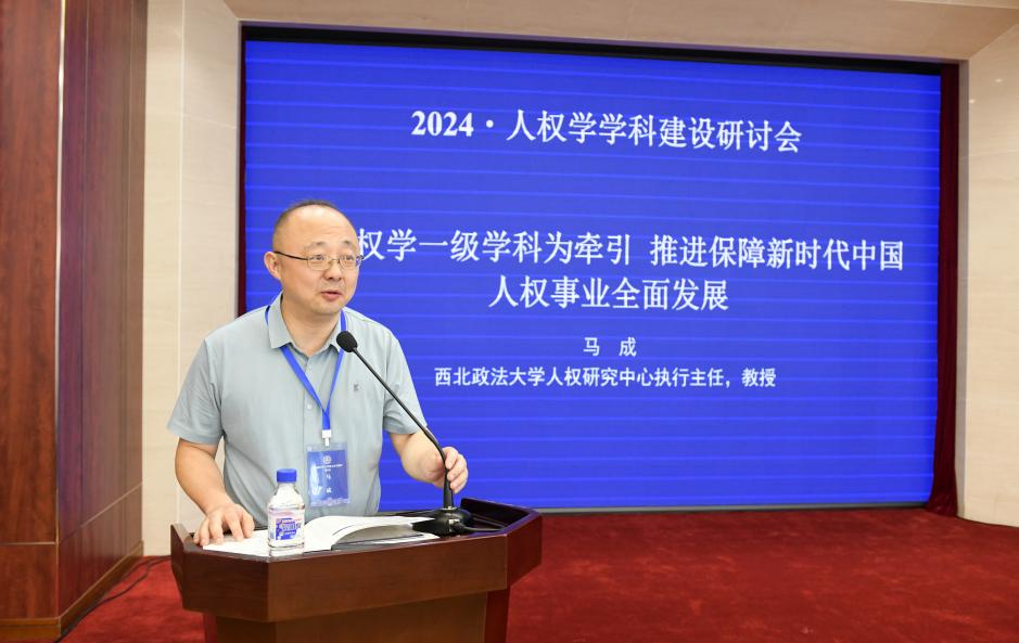 西北政法大学人权研究中心执行主任马成教授围绕“以人权学一级学科为牵引 推进保障新时代中国人权事业全面发展”的主题,认为在发展稳定和安全变革中的中国式现代化的背景下,新中国人权事业的全面发展,是人权学一级学科建设的基本需求。人权学是自主的概念,这指向我们不能人云亦云,而是进行具有自我独特性的发展。人权学科是交叉的,我们要明确的是交叉是越多越好还是越少越好,如果说做交叉学科,是去法学化为主还是法学为主,法学和其他学科之间的比例是多少?
