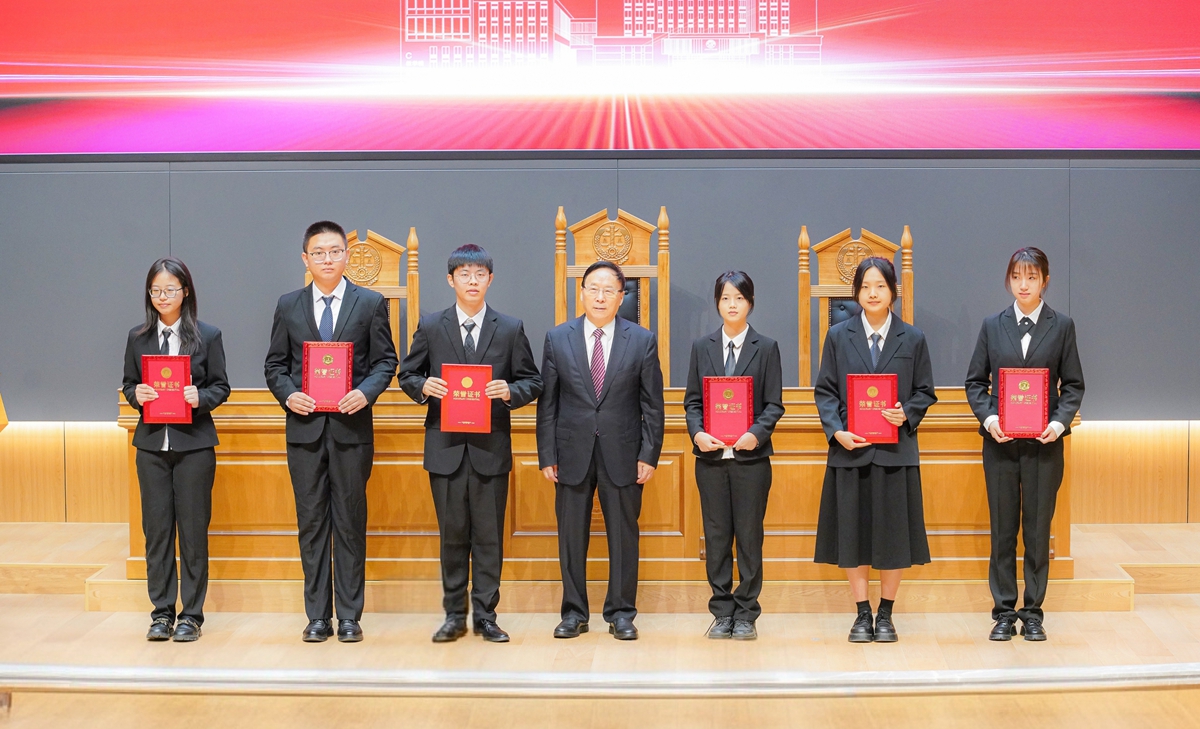 法学学科的发展注入新的动力。随后,张文显向获得“尊法循理奖学金”的获奖学生代表颁奖,同学们用激昂的声音和真挚的情感朗诵了《法学力量》,表达了对法学的热爱和追求。