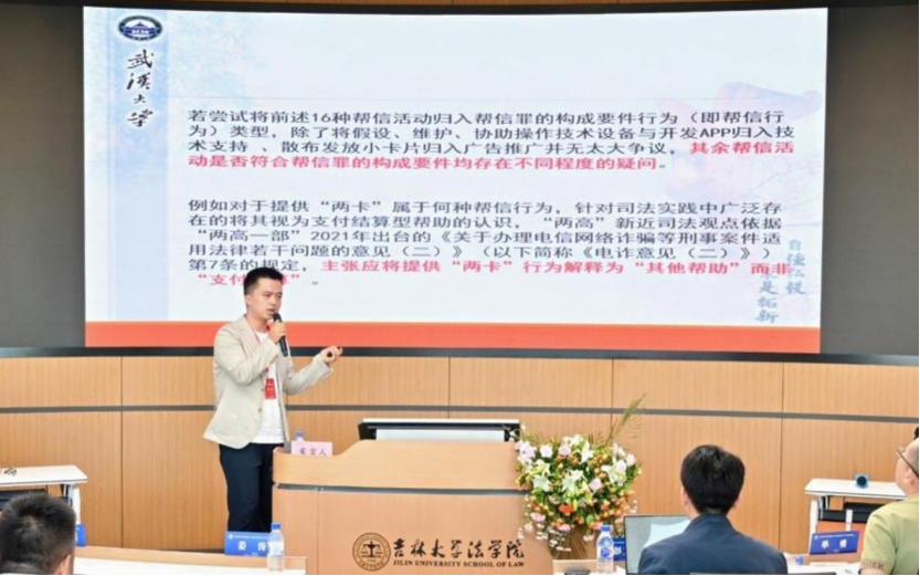 敬力嘉副教授以“论帮助信息网络犯罪活动罪的规范属性”为题做主题报告。敬力嘉副教授认为,明确帮信罪是否具有独立不法内涵,应以事实层面确定帮信行为构造为前提。根据帮信罪在实践中的样态变化,应将帮信罪的构成要件划分为组织型的实质预备犯和非组织型的实质预备犯。