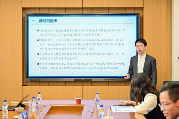 博士研究生王沛然,以《人工智能训练的著作权法理审思——事物本质与中国路径》为题进行发言。第二位报告人重庆大学极速赛车
