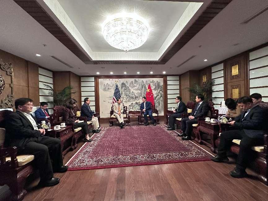 代表团赴亚洲协会参加交流会,亚洲协会(Asia Society)是美国举足轻重的重要智库,是洛克菲勒家族在1956年创办的民间组织,现已成为美国最权威的亚洲政策民间研究机构,是美国和亚太最具影响力的教育文化机构。会议以“探讨中美之间的误解与沟通不畅”为主题,旨在加强两国在当前复杂国际局势下的理解与对话,推动建设性沟通与合作,参会人员包括亚洲协会执行副总裁兼首席运营官、亚洲协会政策研究所创始主任兼高级研究员Debra Eisenman、路透社总裁Paul Bascober等来自政界、智库、媒体与学术界的重要代表。