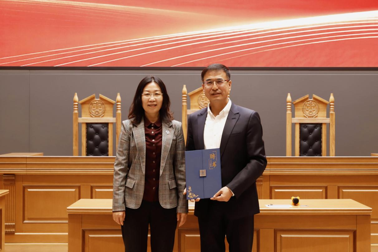 党委书记张杰为迟日大律师颁发“习近平法治思想学生宣讲团校外指导员”聘书。