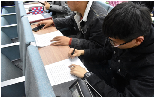 活动伊始,主持人首先向大家介绍了春季防火的重要性与日常实用防火技巧。为活用知识,同学们随后观看了应对火灾的错误示范视频,并敏捷的找到其中的不当之处。对于发生火灾时应当避免的逃生方法及其严重后果,同学们体会深刻。紧接着展开的“你比划我来猜” 游戏将三教五阶的活动气氛推向了高潮。同学们热情高涨,积极抢答,趣味横生的表演方式引得满堂笑声的同时更使得消防安全意识深入人心。