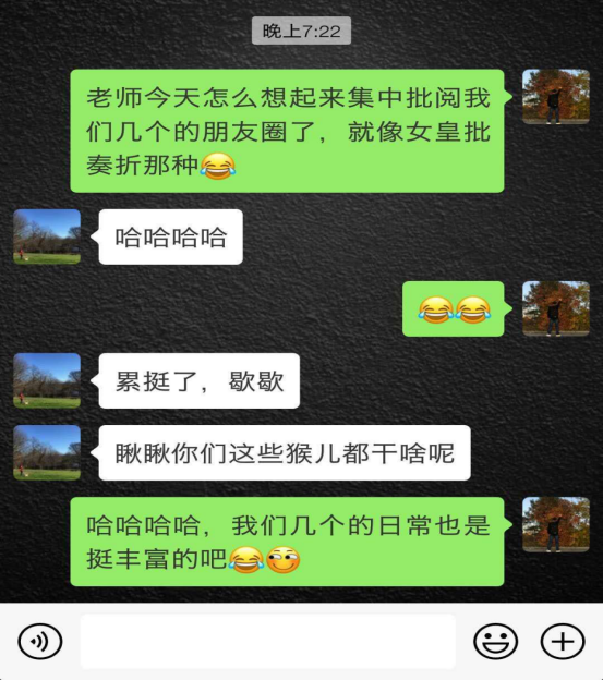时间过得很快,转眼间就到了毕业的时刻,感觉在老师帮助下,这三年经历了很多,也成长了很多。老师平时很少点赞或评论我们的朋友圈,前几天,在去外地的火车上,忽然看到老师集中评论了我们几个人最近半年的朋友圈。毕业季忙着找工作,好久也没去看望老师,老师可能是想看看我们几只最近过的怎么样吧。