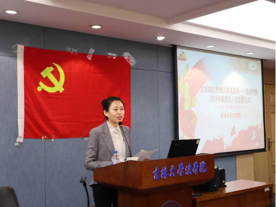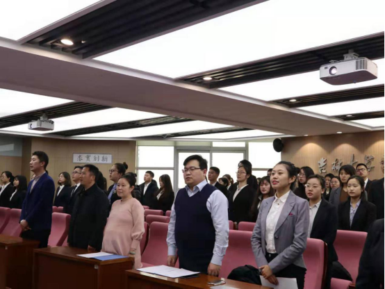 伴随着庄严神圣的国歌声,宣誓仪式正式开始。由林媛媛同志领誓,于洋同志监誓,62名新党员举起右拳,在党旗下庄严宣誓。每位新党员将誓言誓词牢牢铭记在心,用慷慨激昂的声音表达着对党的绝对忠诚和为中国特色社会主义伟大事业奋斗的决心。