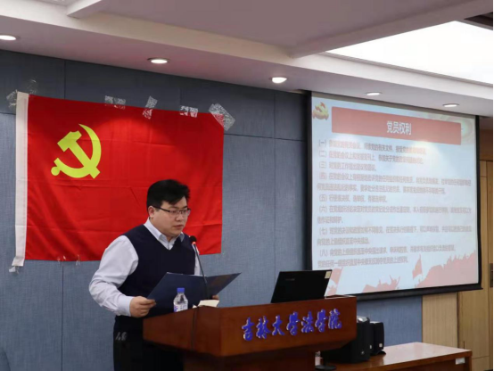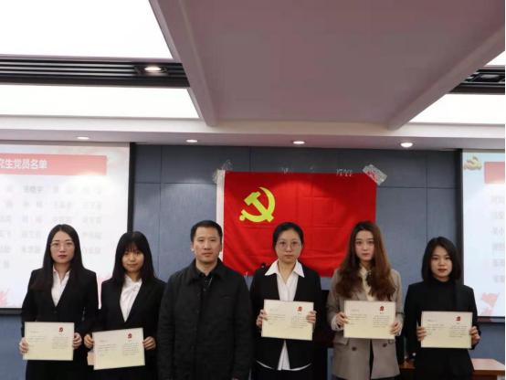 宣誓结束,骆旷达同志宣读《党员的权利与义务》。王立国同志为新党员代表颁发《入党通知书》,并与每一位新党员握手并合影留念。仪式最后,由2016级本科生许鹏聪同学代表新党员发言,他表示组织上入党一生一次,思想上入党一生一世,应当不负时代召唤,书写无愧于祖国与人民的人生篇章。