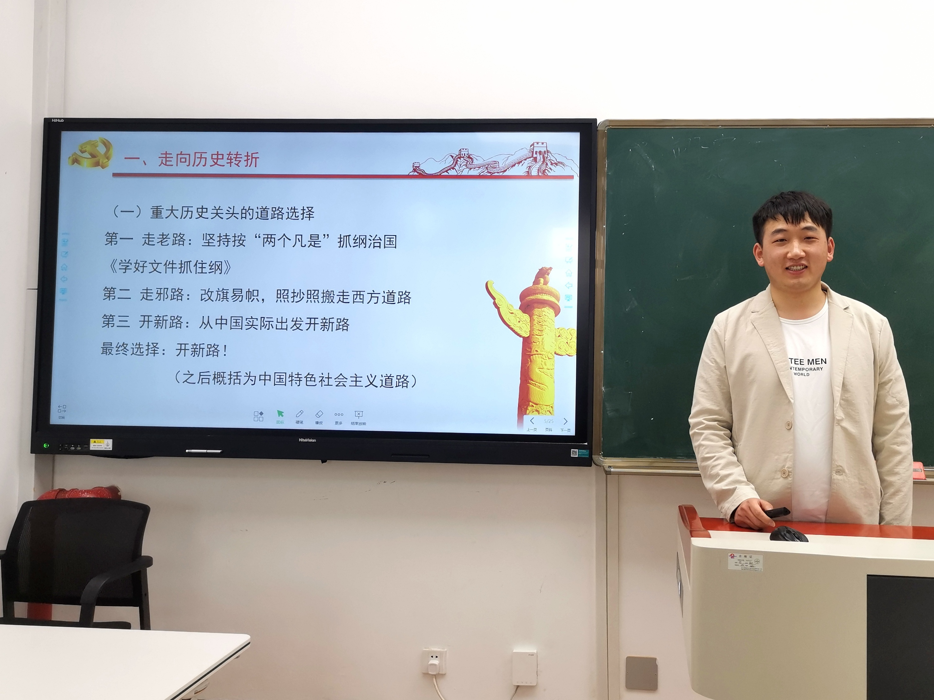 第一部分为“走向历史转折”。在“文革”结束后,党和国家面临着重大历史关头的道路选择。最终我们选择了开辟新的道路,即之后概括为中国特色社会主义道路。为开辟新的道路,我们党和国家初步清理冤假错案、恢复发展科学教育工作、开展了真理标准问题大讨论、召开了国务院务虚会酝酿改革开放,为十一届三中全会的召开打下坚实的基础。