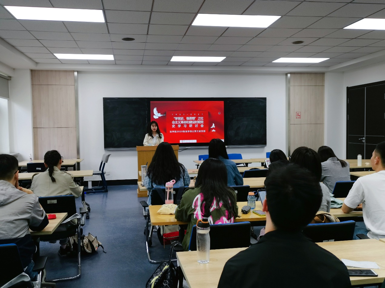 习近平总书记指出:“一个民族、一个国家,必须知道自己是谁,是从哪里来的,要到哪里去,想明白了、想对了,就要坚定不移朝着目标前进。”本次集中研讨活动使与会党员和积极分子深入学习了社会主义革命和建设时期中国共产党是如何团结带领全国各族人民,自力更生,艰苦奋斗,从而建立了社会主义的基本制度,取得了社会主义革命和建设的一系列伟大成就的历史,深刻认识到国家建设应立足于国情,在总结经验的基础上坚定不移地走中国特色社会主义政治发展道路。2020级法学硕士第三党支部将继续开展党史学习活动,从百年党史中汲取智慧和力量,在回顾中提炼经验、在实践中开创道路,以史为鉴,砥砺前行!