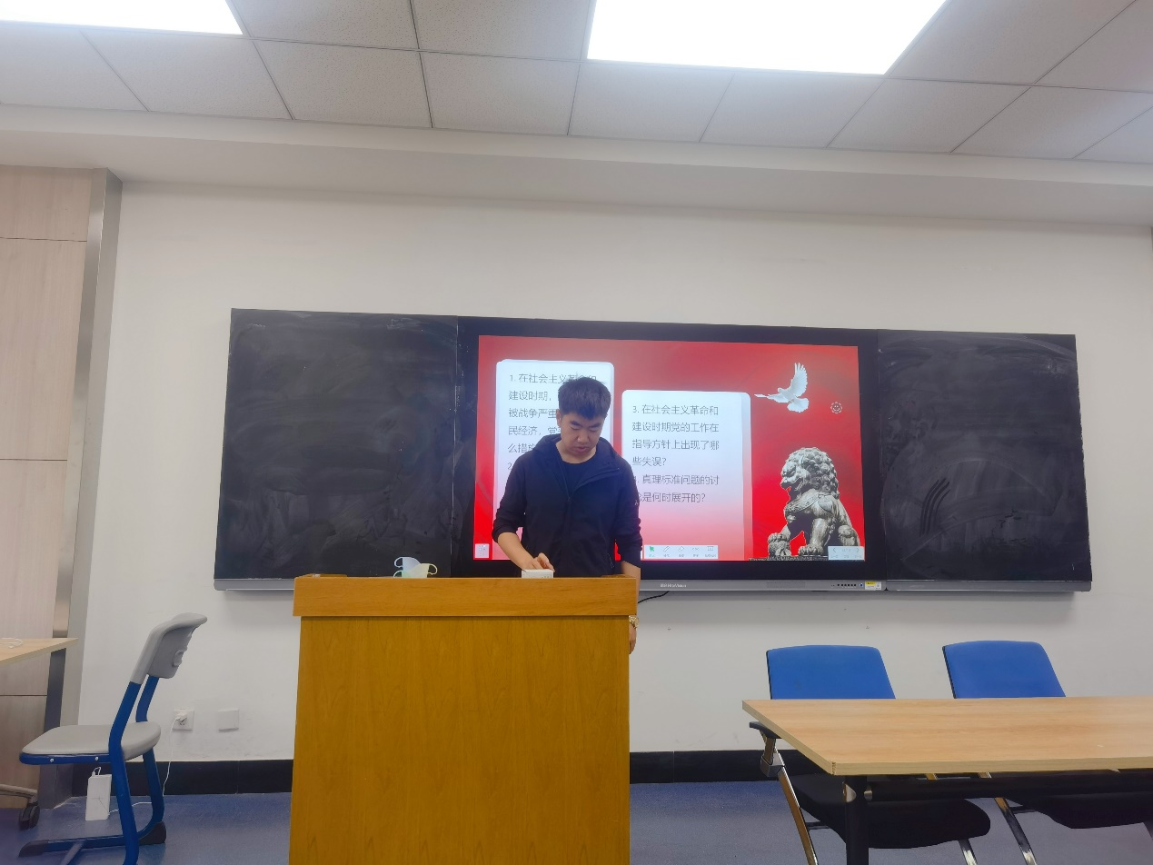 首先,2020级法学硕士第三党支部宣传委员陈晓妹同志作为领读人介绍了党在社会主义革命和建设时期的国家建设目标。在这一时期,国家建设目标经历了从“社会主义工业化国家”到“社会主义强国”再到“实现四个现代化,建设社会主义现代化强国”的转变。她指出,以史为鉴,可知兴替,回顾党在新中国成立后对中国建设社会主义道路的艰辛探索,总结新中国社会主义现代化建设的经验教训,对建成富强、民主、文明、和谐、美丽的社会主义现代化强国具有重要意义。