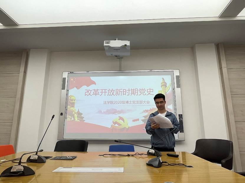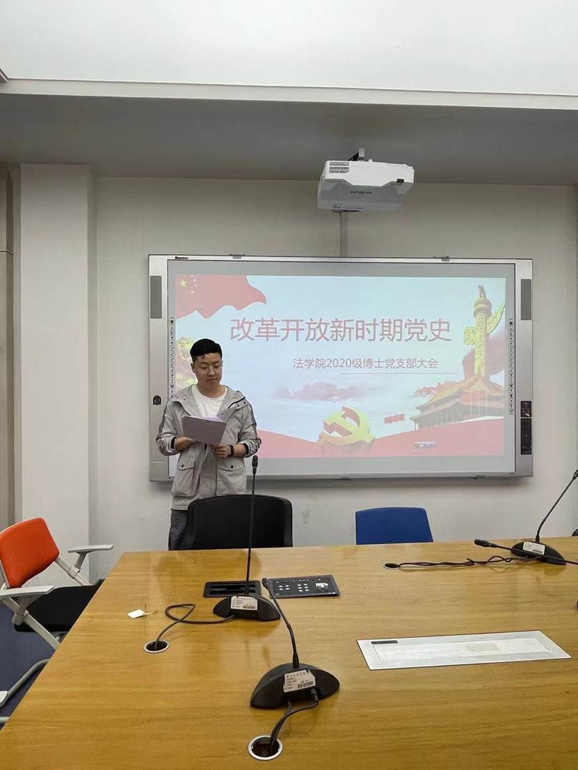2020级博士党支部在经信教学楼D区教室召开了“学党史、悟思想”之改革开放新时期党史学习集中研讨活动。2020级博士党支部党员同志参加活动,本次活动由2020级博士党支部书记侯家钰主持,由孙远航、马智勇同志领学。