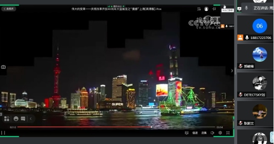 会议伊始,专题领学人周鸿飞先是通过一则短片,以上海浦东的发展为例,带领同学们直观地感受改革开放带给浦东的沧桑巨变。接着,他又从改革开放的阶段进程,取得的成就和时代意义三个维度和大家一起重温了党中央领导全国各族人民在改革开放新时期取得的一系列举世瞩目的伟大成就。