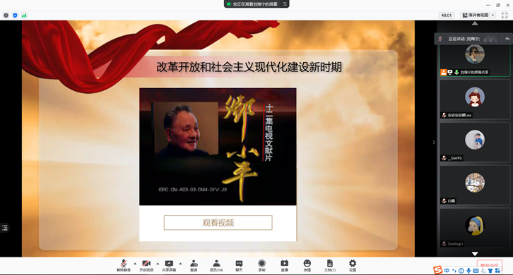 支部书记李莹向支部成员传达了党委通知,并安排刘海宁同学作为此次领学人,此次学习形式为观看纪录片《邓小平》中相关片段。