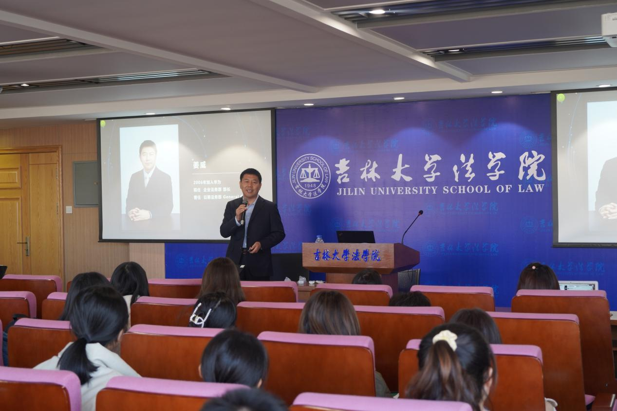 优秀校友姜威作为嘉宾,与大家分享了华为公司的业务发展、企业价值观和法务人才需求。