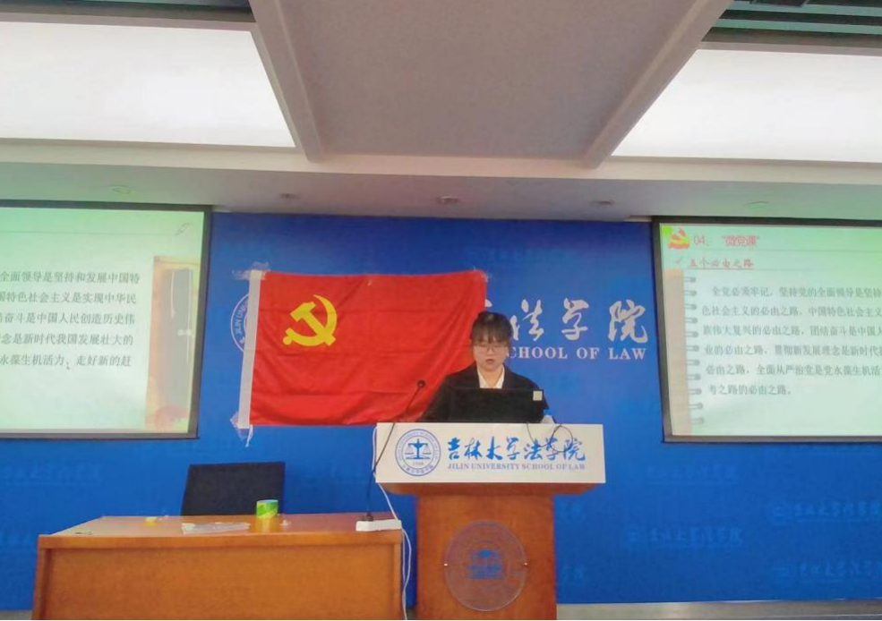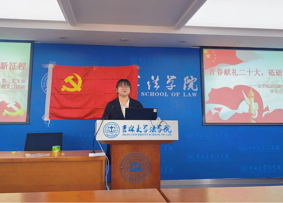 学习伟大历史,开启伟大征程。法学硕士第三党支部副书记汤俊蕊讲解播放《伟大征程:从一大到二十大》。通过视频生动形象的讲授,使得全体参与人在学习中增认同、在思考中悟真理,将中国共产党人筚路蓝缕中勇毅前行的伟大精神,逐渐内化于心外化于行。创新党史学习形式,赓续红色血脉,凝聚奋进力量。