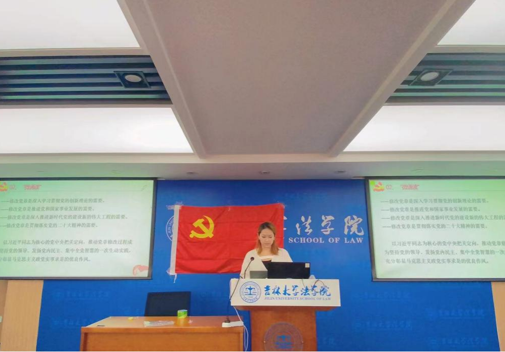 学习党章新变化,践行党章新精神。法学硕士第二党支部副书记尹航领学《中国共产党章程》。党章始终坚持科学发展,每一个时代共产党人应负的历史使命都会在党章中鲜明体现。党章始终坚持初心不改,不管时代的风云如何变幻,党实现共产主义的最高理想和最终目标始终不变。作为研究生党员,要坚持将党章“学”得透彻、“行”得扎实。