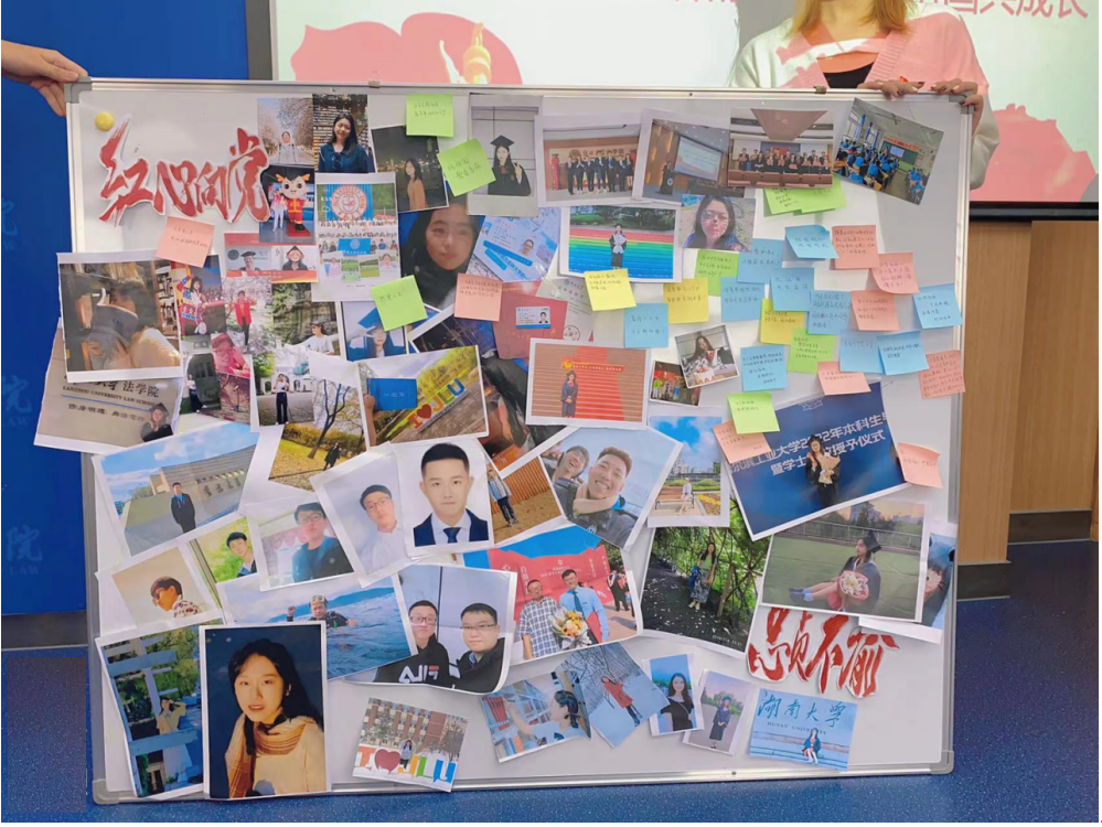 逐梦的动人奋斗故事,合作完成“红心向党、忠贞不渝”照片留言征集板,吸引许多同学驻足阅读、拍照留念。