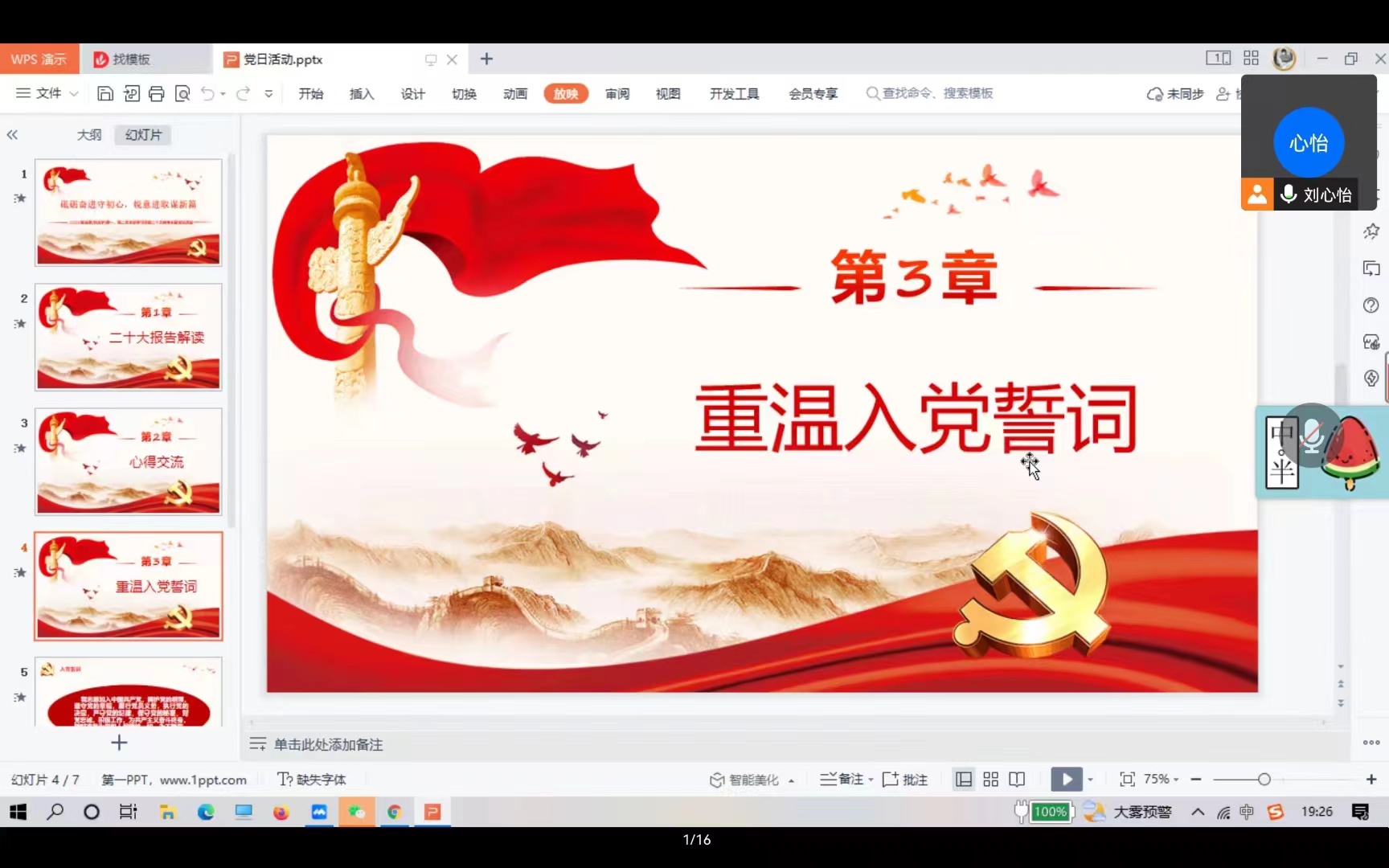 研究生分团委联络部的同学们。会议由第一党支部书记刘心怡主持。