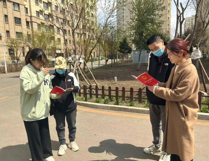 团委组织本科生学生代表到超越街道富强社区开展劳动教育实践活动,为社区居民进行普法宣传并提供志愿服务。