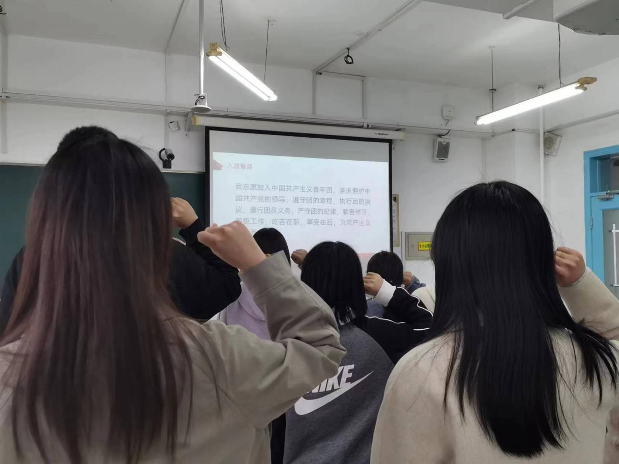 团委组织各团支部重温入团誓词。