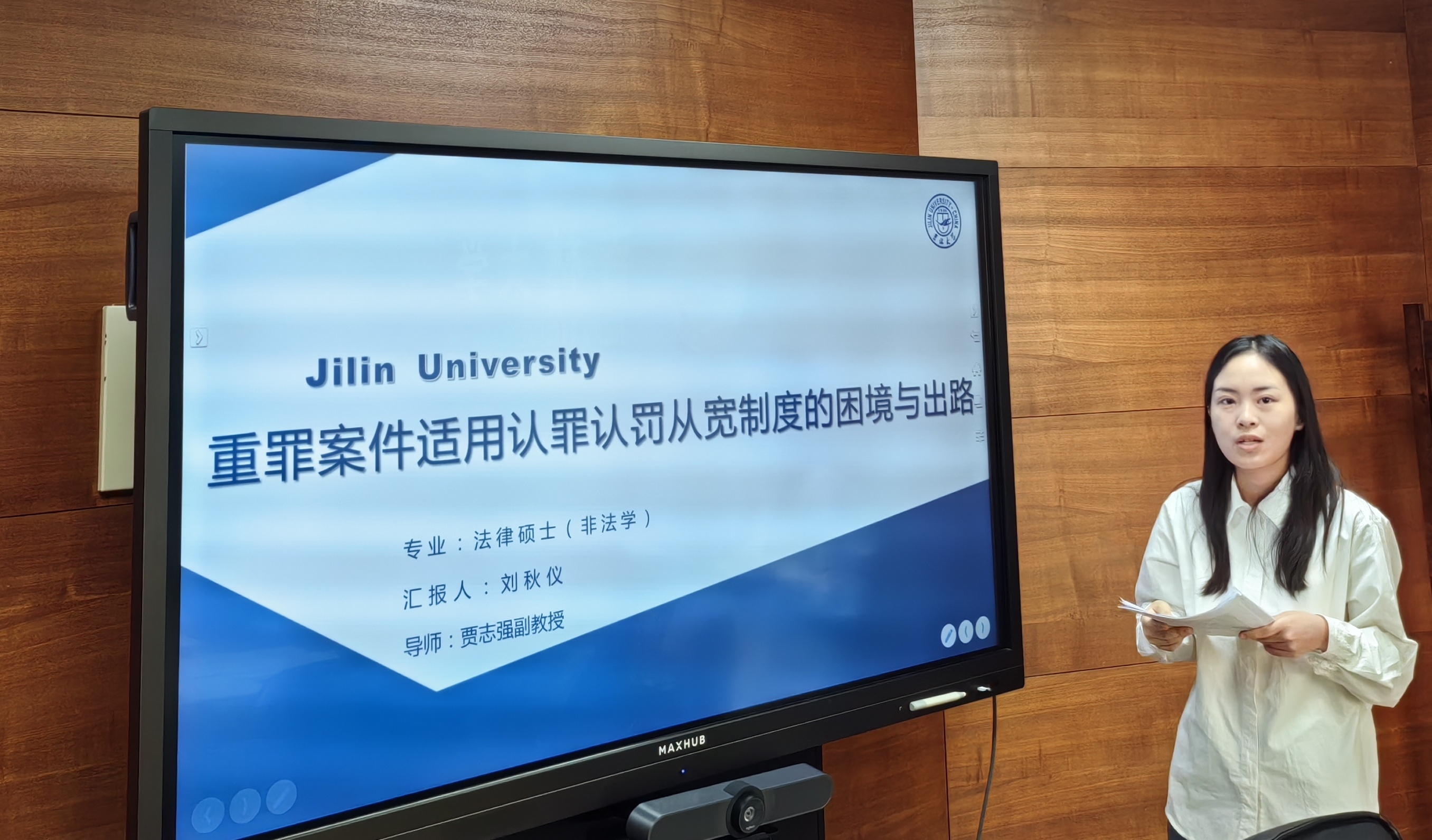 马毓文同学以“同案犯分案处理机制的建构”为题,对同案犯分案处理机制予以规范考察和实证考察,她认为现有法律规范缺乏系统性与权威性、个别规定不尽合理,建议通过确定分案的适用主体、明确分案处理的适用范围来完善分案机制,健全分案后的特殊处理机制,并强化监督和救济机制;宋姝梦同学的题目是“论刑事诉讼中专门性问题报告的证据能力”,她从专门性问题报告的规范分析入手,通过引用我国《刑事诉讼法》第50条和《美国联邦证据规则》对关联性的界定来分析专门性问题报告的关联性,并提出专门性问题报告不属于法定证据种类,而是“准鉴定意见”;吴雯婷同学以“论专项合规整改——以涉税案件为视角”为题,她认为合规整改是刑事合规制度构建的应有之义、专项合规相较全面合规更符合刑事合规的要求、税收专项合规整改具有独特的激励作用,并从税收专项合规整改的参与方、计划、考察期、费用承担四个方面来对税收专项合规整改提出制度构建;谭城城同学的题目是“共同犯罪分案审理被告人对质权研究”,她认为在分案审理的情况下作为他案被告人的共犯已经由其他审判程序进行审判,一般并不需要到庭,因而分案审理加剧被告人对质难的困境,她主张明确赋予被告人完整的对质权并注重对分案审理对质权的特别保护;曲君同学以“个人信息保护刑事附带民事公益诉讼问题研究”为题,她通过对相关案例进行整理,从案件的空间分布、诉讼请求的设计、证据的提出与处理、案件的认罪认罚认赔情况、纠纷解决方式等方面对个人信息刑事附带民事公益诉讼案件予以实证分析,她认为该类案件存在法律规定不明确、证据处理与使用规则缺失、认赔从宽存在适用障碍、调解程序展开困难的运行困境,并提出与之对应的优化路径。
