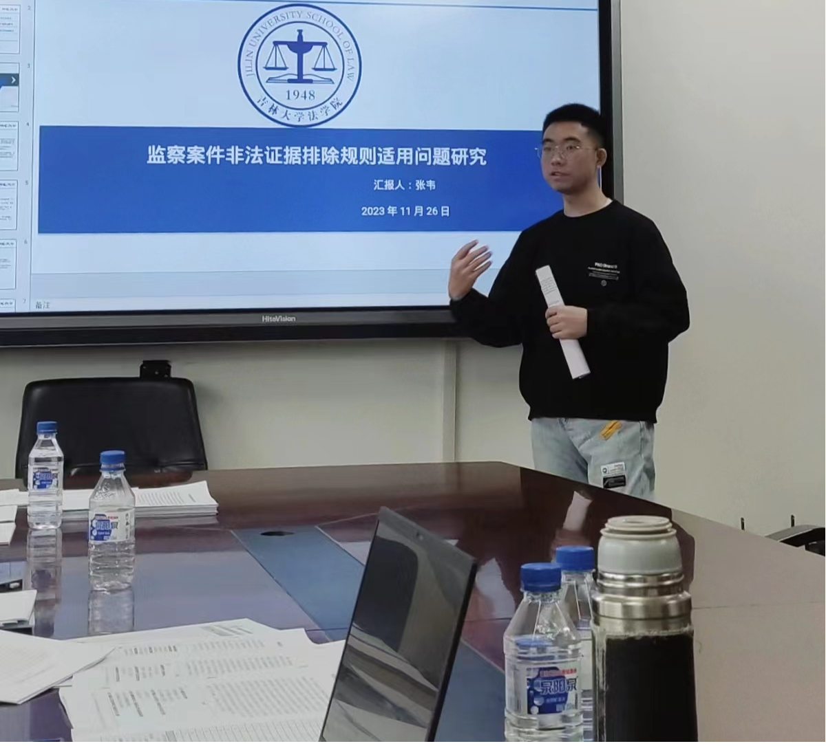 刘佳同学以“法定刑以下判处刑罚核准程序的分析与完善”为题,对现行规范和制度运行两个层面进行检视,认为现在该程序存在司法解释立法化、裁量权行使过于随意、缺乏监督等问题,提出法定刑以下判处刑罚核准权力应下放到高级人民法院。潘柳霖同学的题目是“论审判环节监察非法证据排除的实践困境与制度完善——以157份监察案件判决书为基础的实证分析”,通过对人权保障和违法控制两种价值的分析,她得出我国非法证据排除规则陷入国家权力本位理论误区的结论,对此提出应落实审判中心主义的要求。杜余舜华同学的题目是“认罪认罚案件报复性抗诉问题研究”,她认为报复性抗诉是检察机关滥用抗诉权的行为,针对检察机关的报复性抗诉,应弱化量刑建议的司法效力、强化检察机关的客观公正义务、增加上诉审查环节。张韦同学以“监察案件非法证据排除规则适用问题研究”为题,从律师难以介入、司法机关意愿不高等角度分析了非法监察证据排除难的原因,提出应将初核证据纳入审查范围之中、非法言词证据的排非标准应有所界分、强化职权排非作用等完善路径。安振伟同学的题目是“公安机关办理内部行刑交叉案件衔接机制探究——以公安派出所办理故意伤害案件为视角”,他从办案实务的角度进行分析,认为公安机关在立案时出于避免撤案等原因,会提高立案标准,在立案之前采用行政化手段替代刑事侦查,不利于刑事诉讼法实施和人权保障,对此应在刑事诉讼程序中贯彻非法证据排除规则,进一步明确具体案件的立案标准,在公安机关考核层面应对撤案宽容化,调整破案率的考核指标。