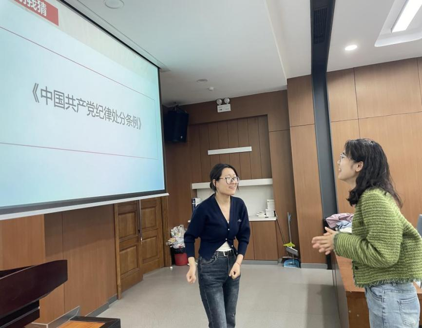 为调动全体党员学纪明纪的积极性和主动性,持续营造全员参与、人人学纪的良好学习氛围,2023级法律硕士各党支部联合开展党纪知识竞赛。“你画我猜”“飞花传令”,各赛队拼脑力、比反应,用智慧对决,用实力比拼,展现出扎实的理论知识功底。参赛研究生在在激烈竞答和思维碰撞中,促进交流互动和学习分享,激发学习热情,提高党纪学习成效。