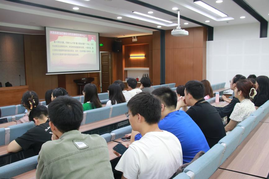 2022级法学硕士第三党支部、2022级法律硕士(非法学)第一党支部、第二党支部于6月28日举办“学党规党纪、弘清风正气”联合党日活动,本次活动由2022级法学硕士第三党支部书记王珂馨主持。