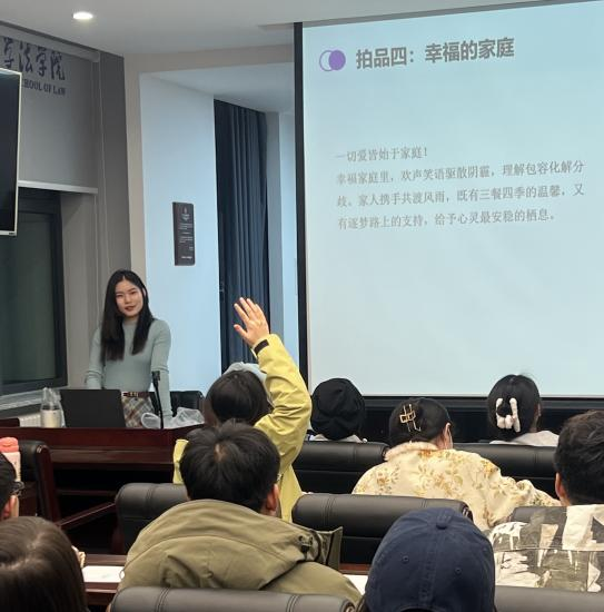 “情绪交换商店”旨在为同学们提供一个情感交流与释放的平台,通过 “快乐共享箱” 与 “情绪垃圾桶” 这两个创意环节,引导大家积极面对自身情绪,增强彼此间的理解与支持。活动于2025年4月9日在法学楼B404顺利开展,全体同学踊跃参与,现场氛围热烈而温馨。同学们进入教室后,依照规则认真书写自己近期的快乐点滴与烦恼困惑。在这个过程中,大家神情专注,不少同学脸上流露出思考的神情,仿佛在回顾过往经历。书写完成后,大家纷纷将纸团投入相应容器,现场秩序井然。抽取与分享环节将活动推向高潮。每组代表上台,从两个容器中抽取纸团并读出内容。当读到快乐之事时,如某位同学分享自己在运动会上为班级赢得荣誉的瞬间,台下响起阵阵掌声,同学们脸上洋溢着笑容,共同感受这份喜悦;而面对烦恼,诸如学习压力大、与父母沟通不畅等问题,分享代表结合自身经历给出真诚建议,如合理安排学习时间、主动与父母心平气和沟通等。其他同学也积极举手,为匿名同学送上鼓励的话语,有的说“别担心,大家都有类似压力,一起加油”,温暖的氛围弥漫整个教室。