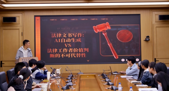 汇报题目为《法律文书写作:AI自动生成VS法律工作者价值判断的不可代替性”》