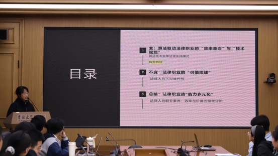 汇报题目为《法律职业的算法共生:技术理性下的效率革新与价值理性的恒常守护》