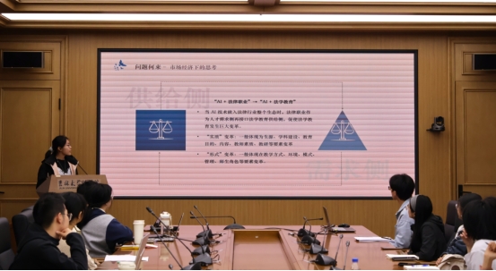 程悦凌团队聚焦技术冲击下的职业图景重构,以“法律文书智能生成系统的司法适用困境”切入,揭示算法决策带来的“技术黑箱”与责任主体模糊化风险。其创新性提出“双轨制审查机制”——即建立人机协同的交叉验证流程,建议通过立法明确“算法解释权”作为救济路径。该观点获得侯明明老师“兼具技术理性与法治精神”的高度评价。