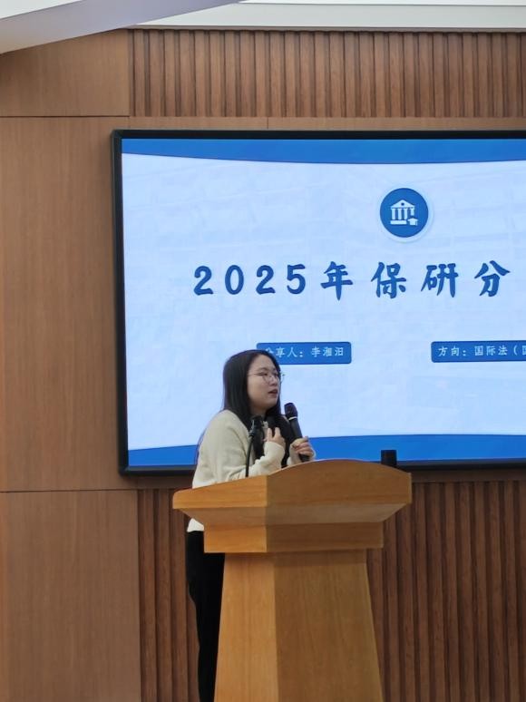 李湘汨同学向学生们着重讲解了国际法方向法硕的备战过程,详细介绍如何合理规划备考时间线,强调双线并行策略,建议大家科学备考,总结并详细分享了自己备考与入营的相关经验。回顾自身历程,她鼓励大家要尽力去做一些觉得值得的事情,正视迷茫和焦虑。
