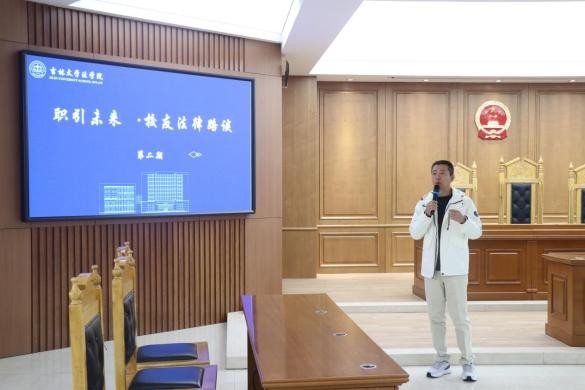 走向知名跨国企业高级管理岗位的丰富职业阅历,进行了极具针对性的分享。他深入剖析了涉外法律业务的前景与挑战,强调大三阶段是夯实专业根基、强化法律英语应用能力的黄金时期,并指出卓越的英语能力是突破国际业务壁垒、形成个人差异化优势的关键。在职业规划方面,他引导学生秉持“实事求是,精准画像”的原则,理性审视自身特质与律所、企业法务、公职系统筹不同赛道的匹配度,避免盲从,做出契合自身发展的明智选择。
