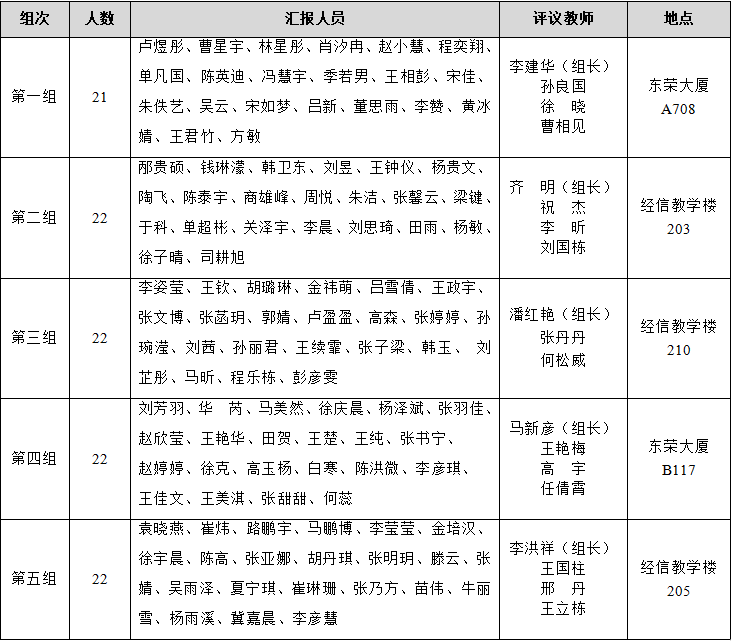 硕士研究生109人共分为5组,组内发言以5-6人为一个评审单元,保证每一评审单元内均涵盖民商方向。