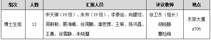 博士研究生13人合成1组,组内发言以3-4个人为一个评审单元,保证每一评审单元内均涵盖民商方向。