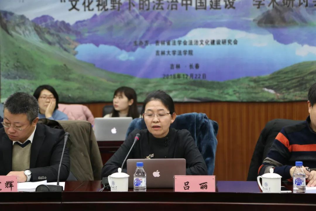 吕丽教授致开幕辞。他们对各位专家学者齐聚吉大表示热烈的欢迎,对本次会议的主题所彰显的法治价值给予了充分肯定,也希冀传统文化能够在当下法治中国建设中绽放光彩。